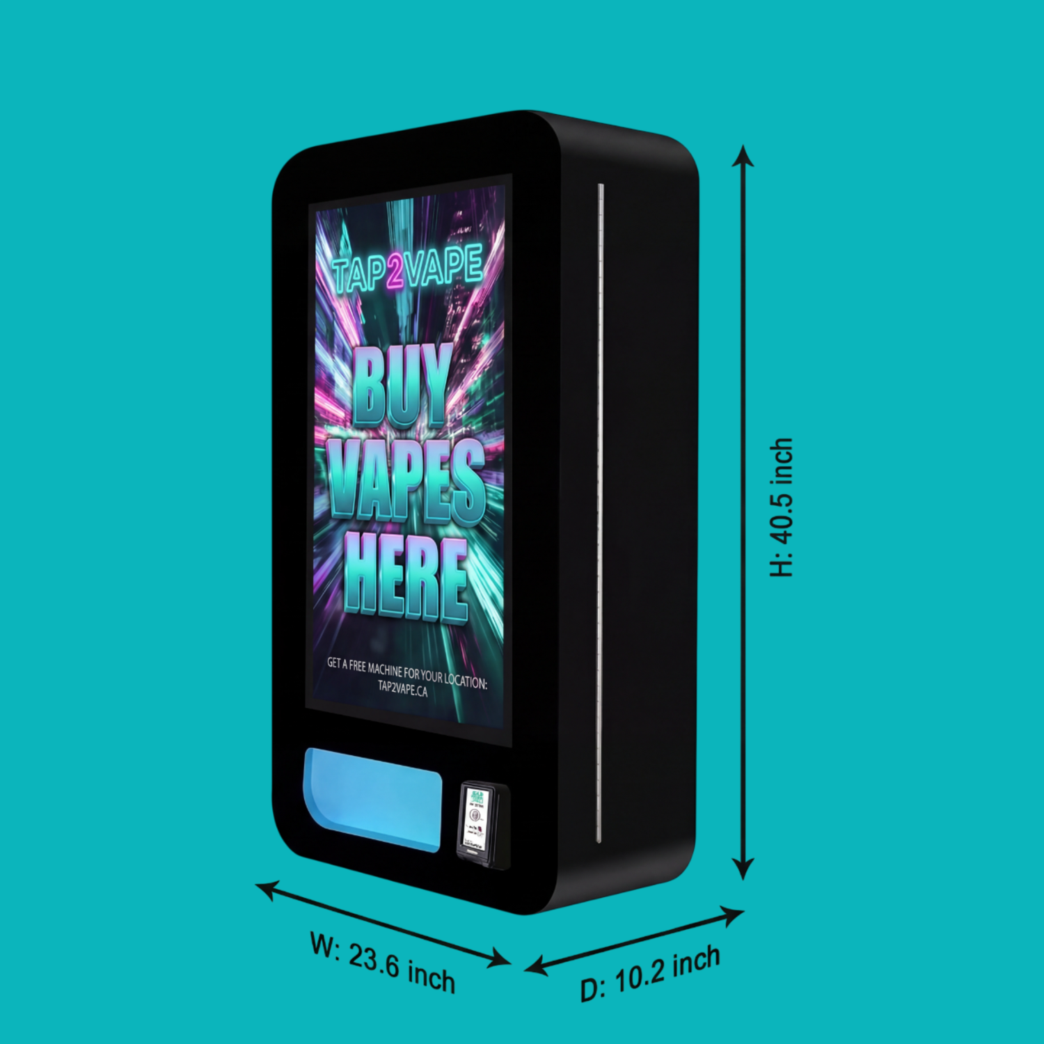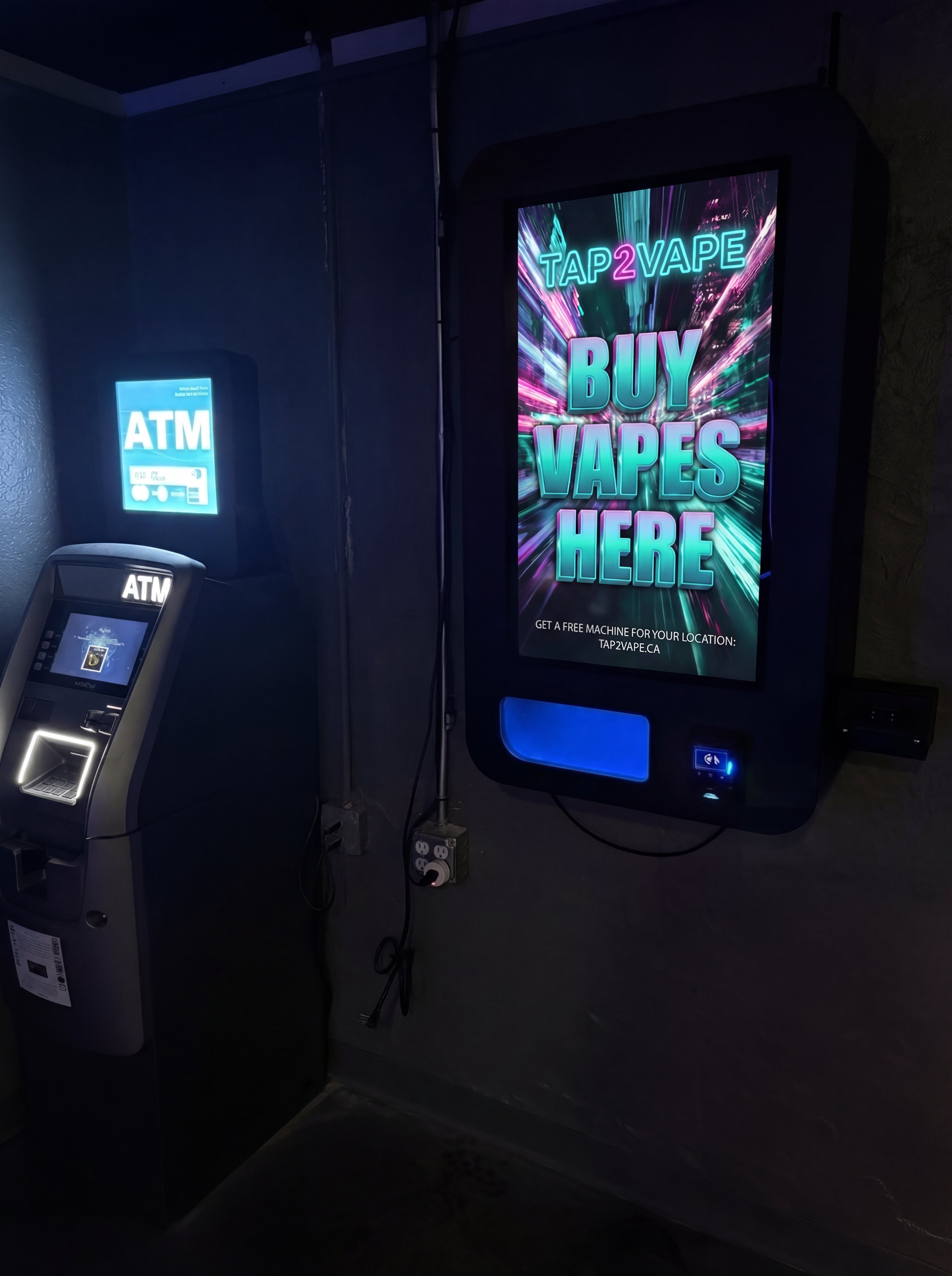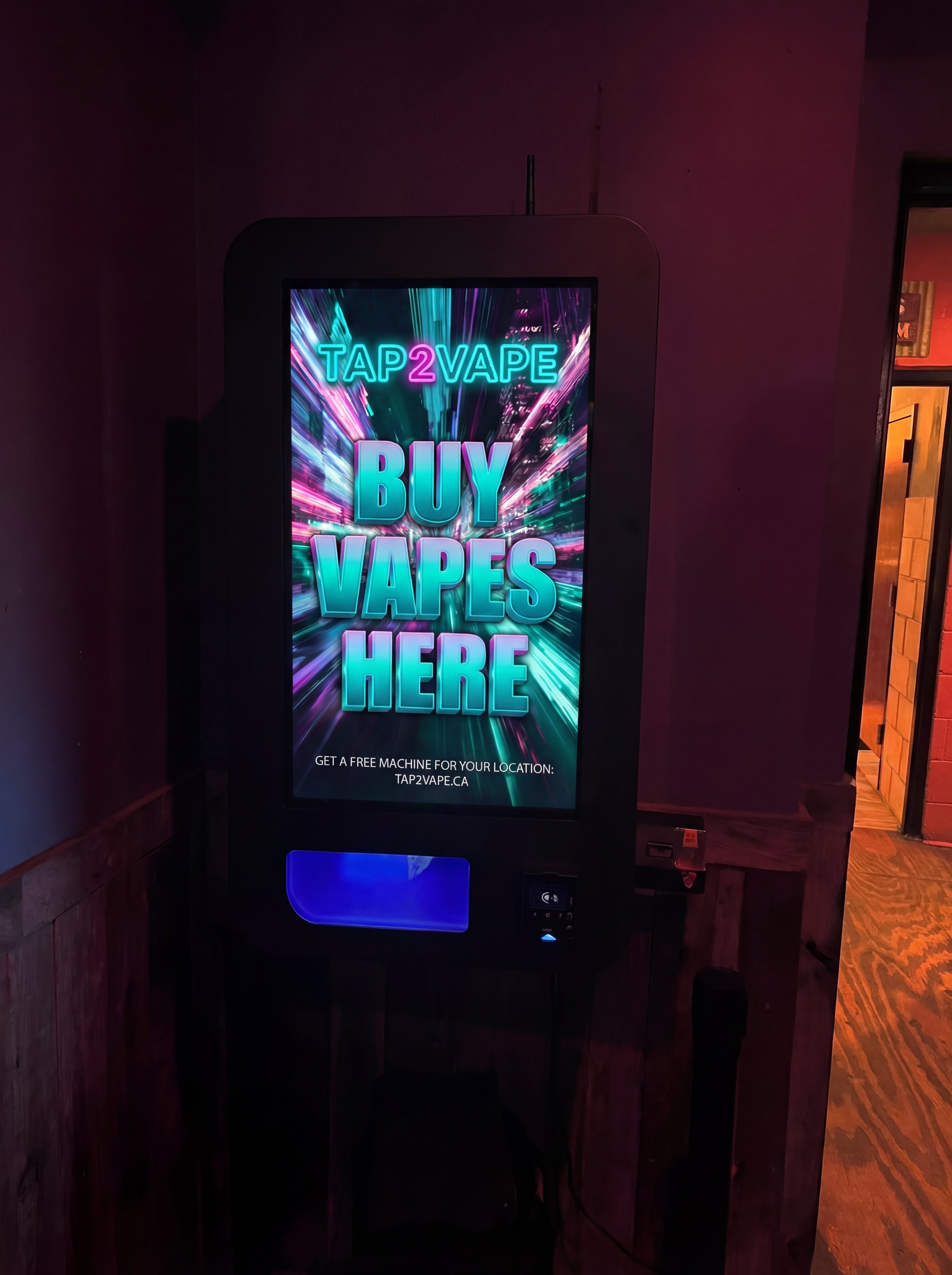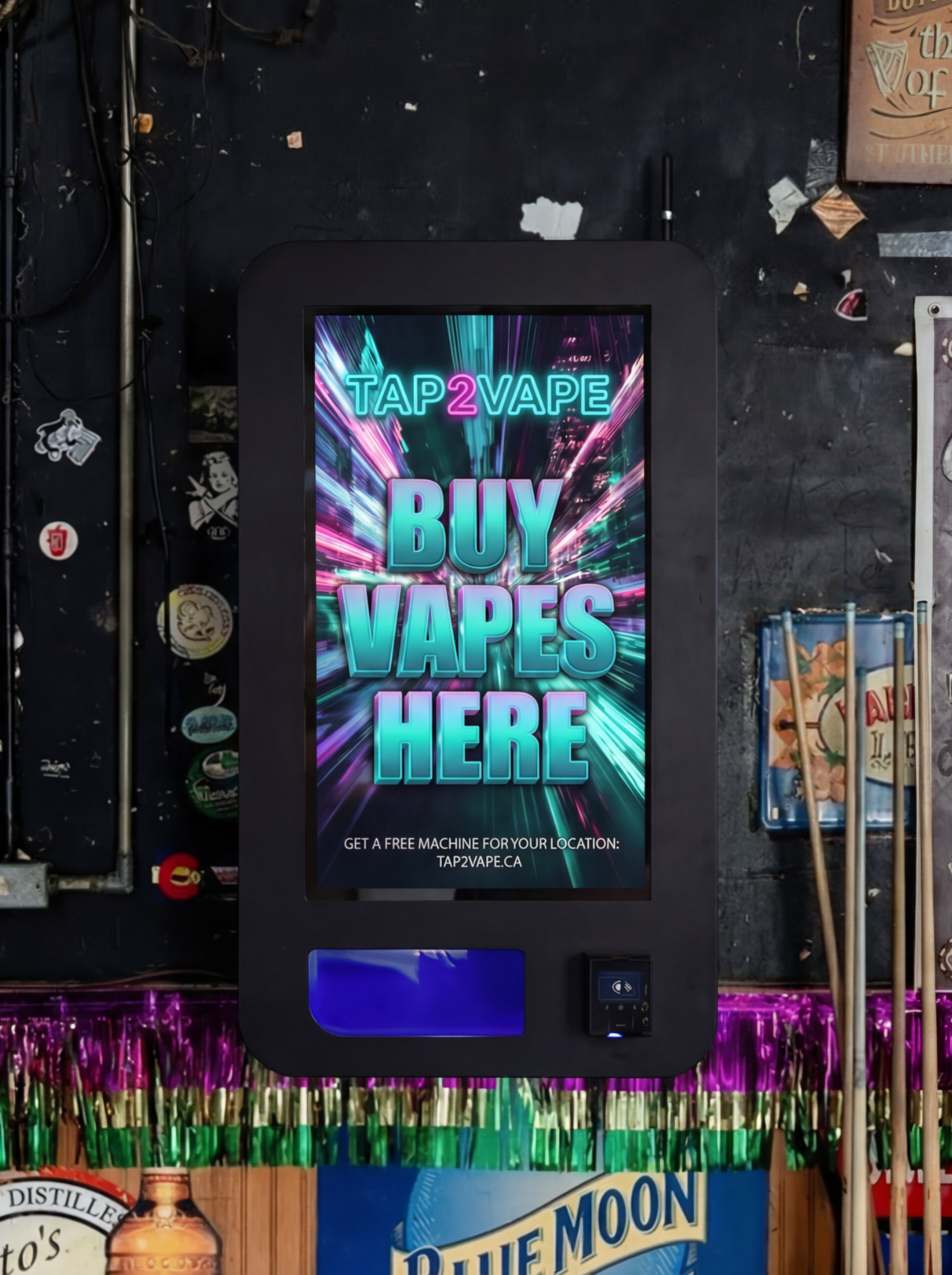 A compact wall-mounted machine designed for tighter spaces while delivering the full Tap2Vape experience.