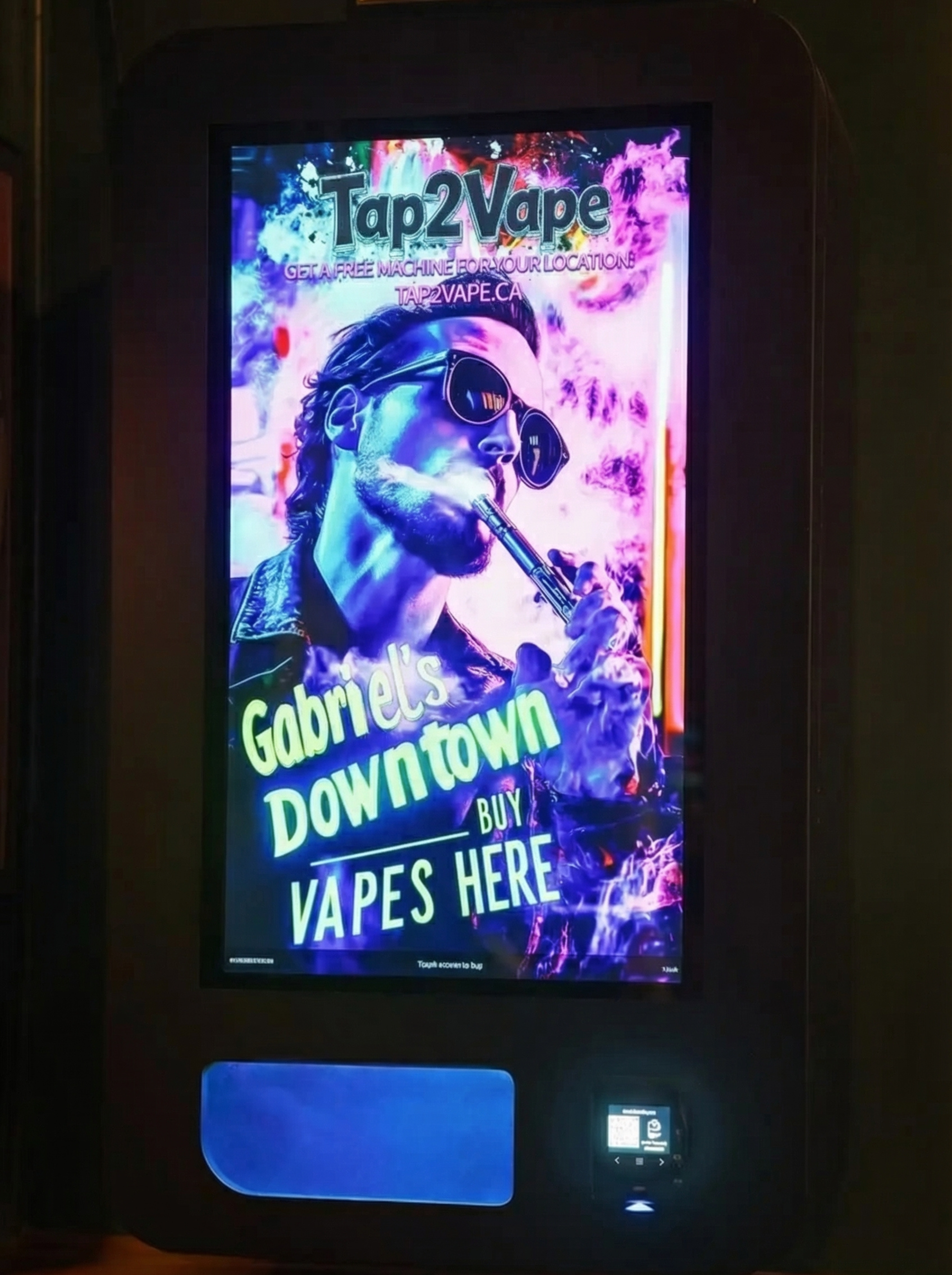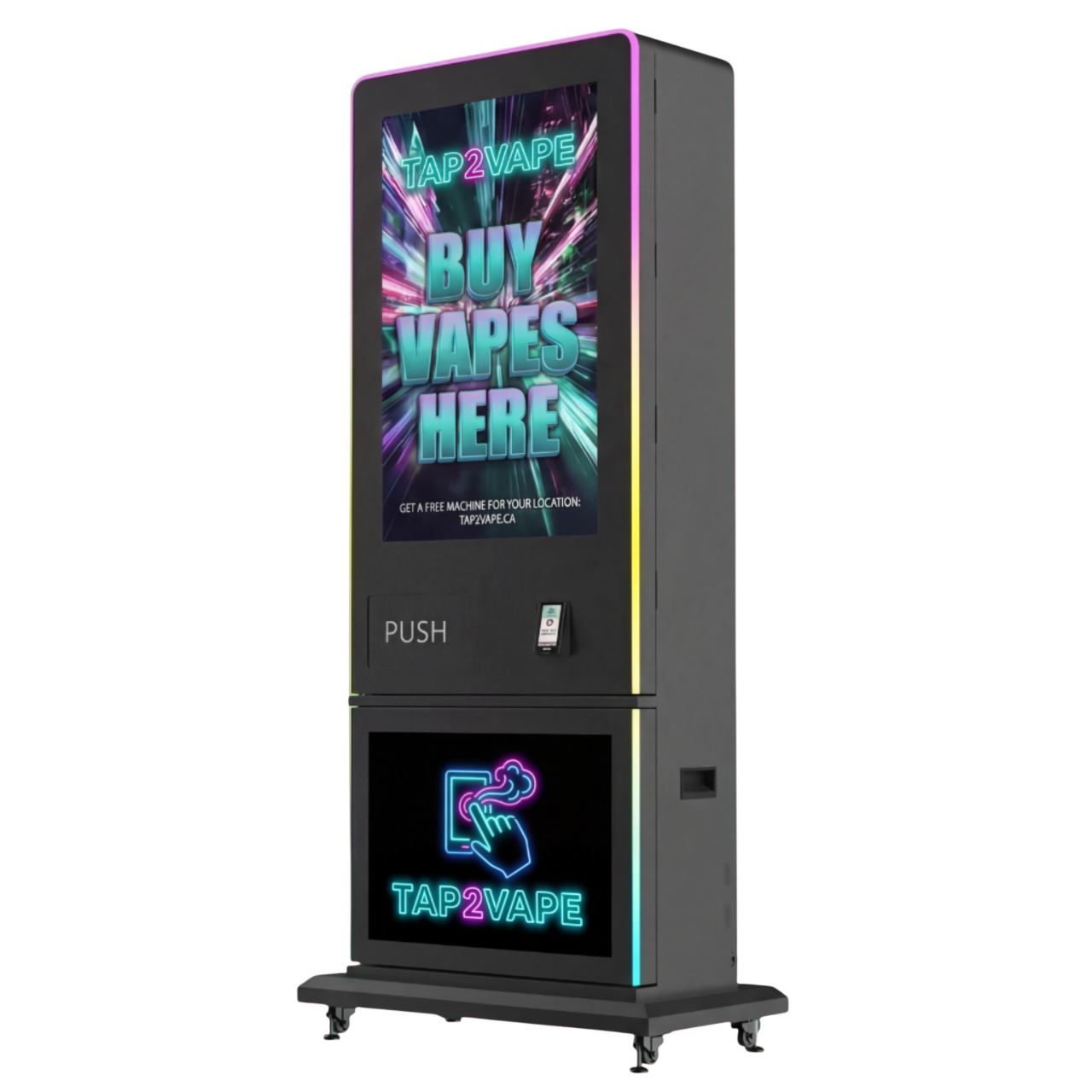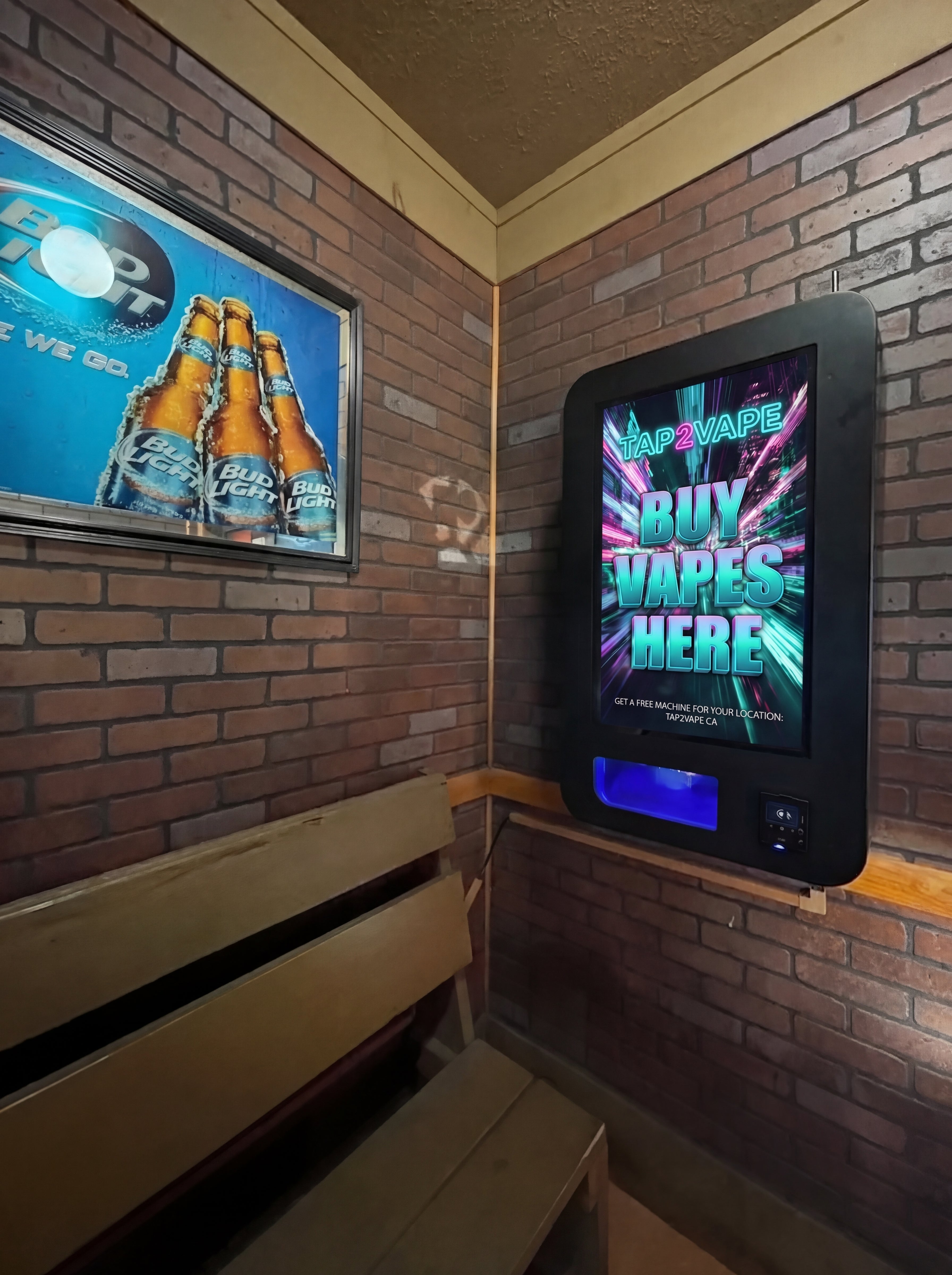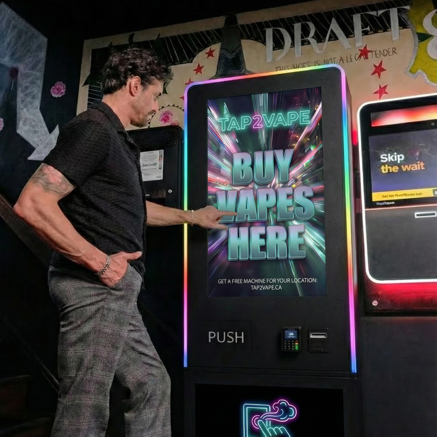 A compact wall-mounted machine designed for tighter spaces while delivering the full Tap2Vape experience.
